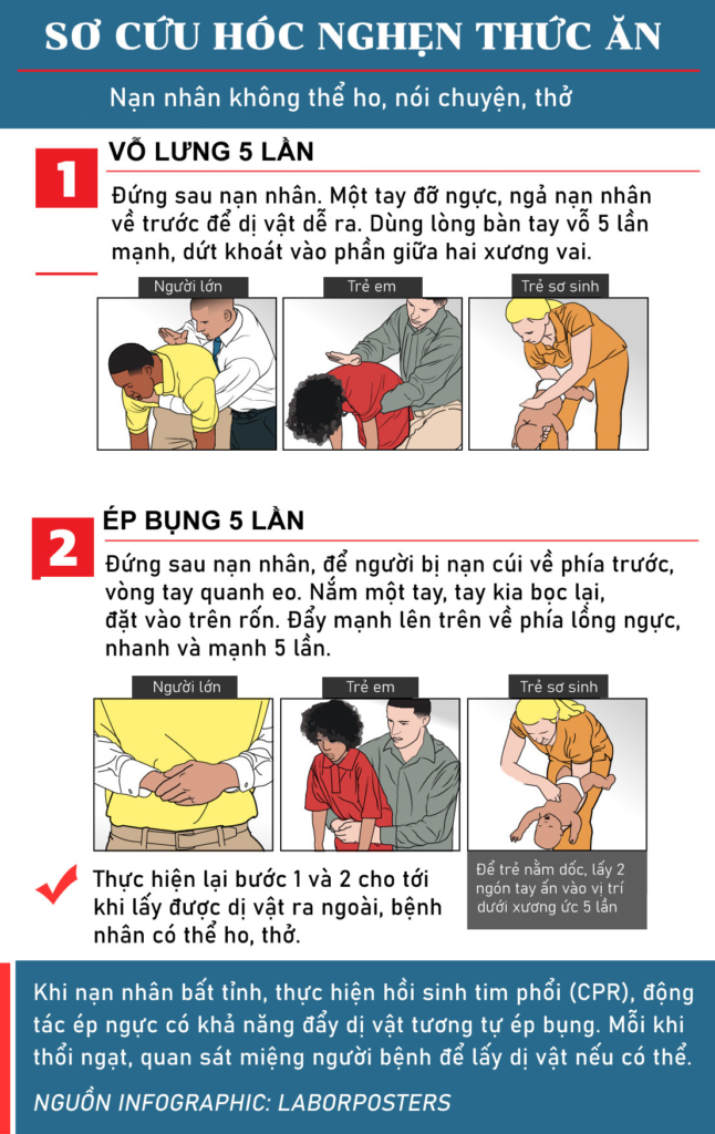Nghiệm pháp Heimlich là phương pháp được sử dụng khi tắc nghẽn đường thở nặng và đe dọa tính mạng do dị vật hoặc thức ăn.