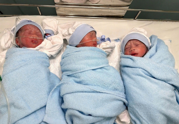 Sản phụ 28 tuổi mang tam thai tự nhiên, trong vòng 5-10 phút sinh thường thành công 3 bé trai trong đó hai bé nặng 1,7 kg và một bé nặng 1,6 kg.