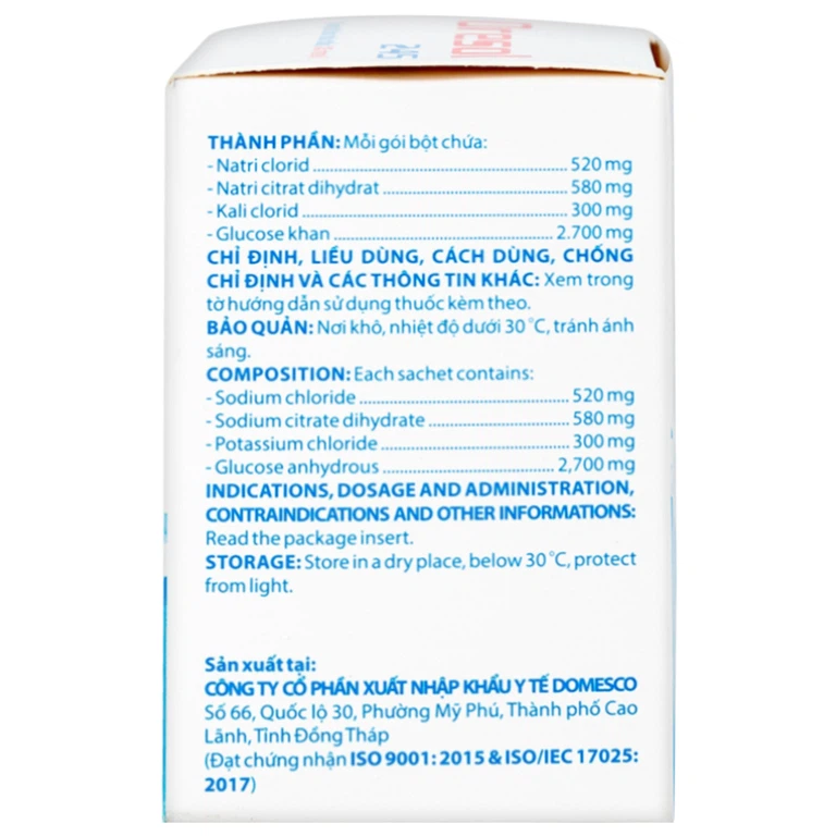 Khi pha dung dịch Oresol 245 Domesco vào nước ta được 1 dung dịch đục, luôn lắc hoặc khuấy kỹ trước khi uống.