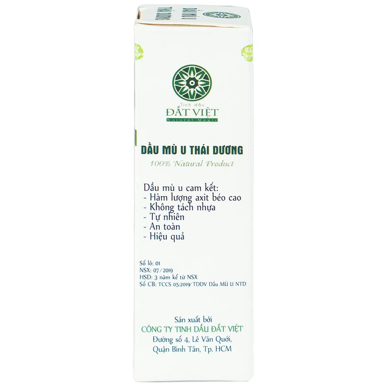 Dầu Mù U Thái Dương được sản xuất tại Công ty Tinh dầu Đất Việt, nơi cung cấp sản phẩm tinh dầu chiết xuất từ thảo mộc thiên nhiên thuần Việt và hoàn toàn nguyên chất. Nhà máy chiết xuất tinh dầu của Tinh dầu Đất Việt hiện sở hữu trang thiết bị hiện đại và quy trình sản xuất nghiêm ngặt, được cấp chứng nhận tiêu chuẩn GMP cùng chứng nhận tiêu chuẩn chất lượng ISO.