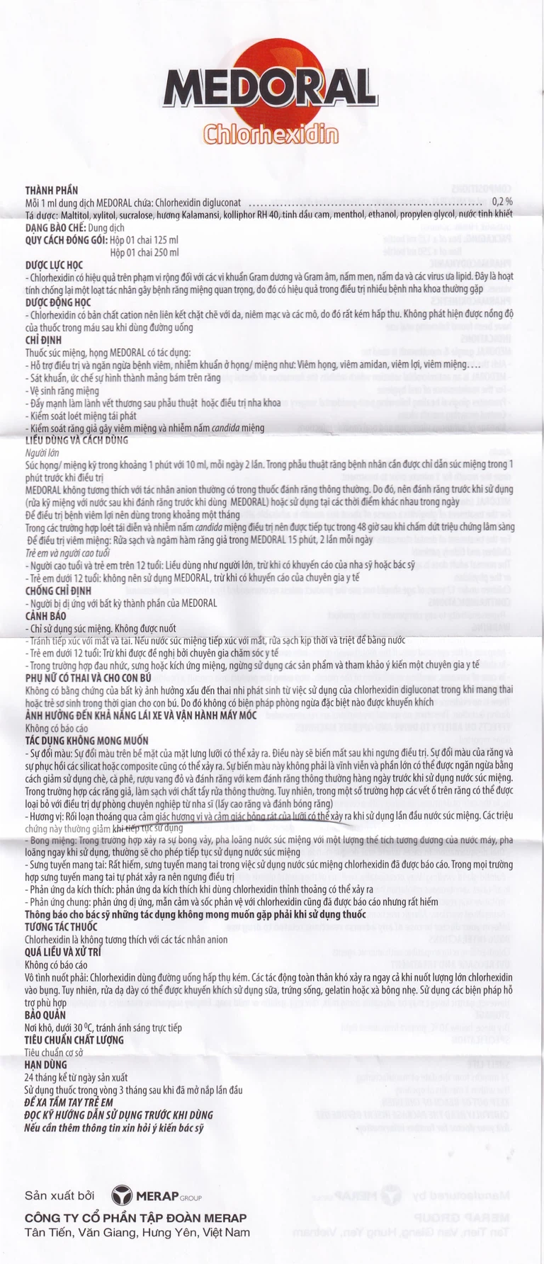 Thuốc súc miệng họng Medoral 250ml chống chỉ định trong trường hợp bị dị ứng với bất kỳ thành phần của súc miệng họng Medoral Merap.