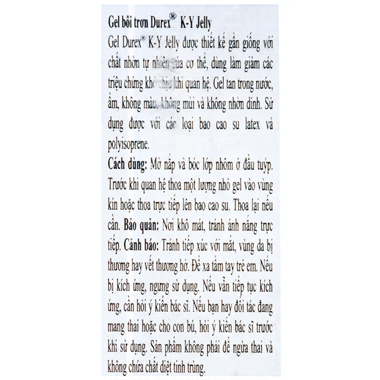 Gel bôi trơn Durex K-Y Jelly không phải để ngừa thai và không chứa chất diệt tinh trùng.