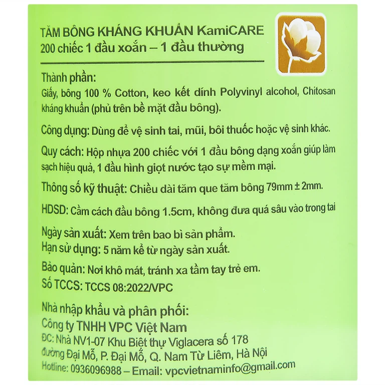 Do đó, người dùng có thể yên tâm về độ kháng khuẩn và tinh khiết của sản phẩm tăm bông Kamicare.