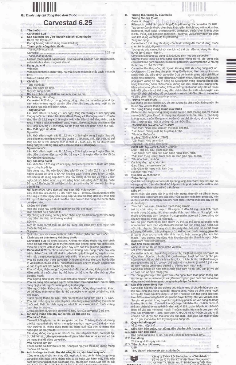 Carvestad 6.25 có chứa lactose. Không nên dùng thuốc này cho bệnh nhân có các vấn đề về di truyền hiếm gặp không dung nạp galactose, thiếu hụt enzym lactase toàn phần hay kém hấp thu glucose-galactose.