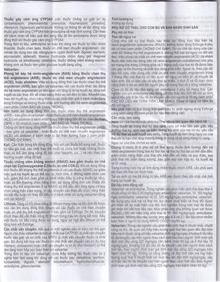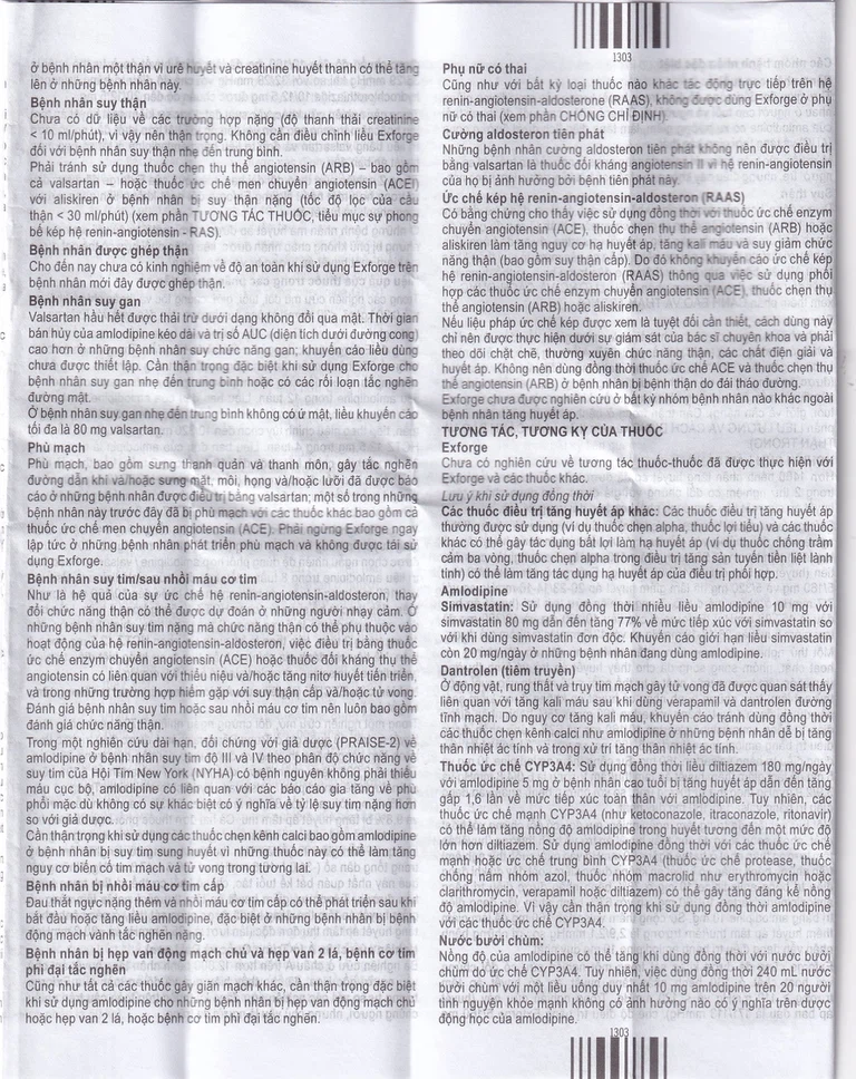 - Sử dụng Exforge đồng thời với các sản phẩm chứa aliskiren ở bệnh nhân đái tháo đường hoặc suy thận (tốc độ lọc của cầu thận (GFR < 60ml/phút/1,73m2)).