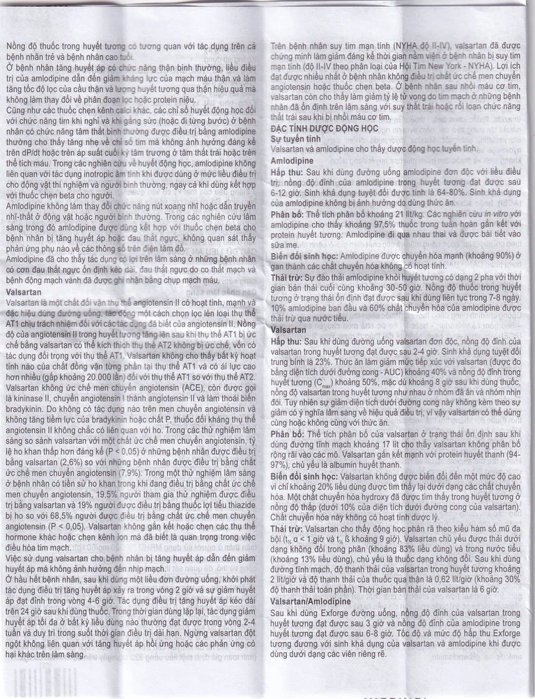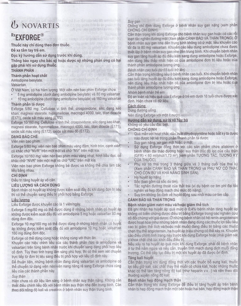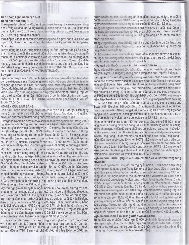 Exforge 5mg/80mg có thể được dùng ở những bệnh nhân có huyết áp không được kiểm soát đầy đủ với amlodipine 5mg hoặc valsartan 80mg dùng đơn độc.