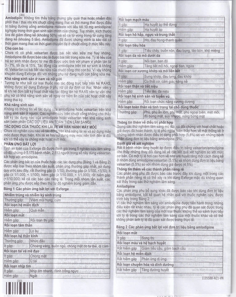 Phải ngừng Exforge ngay lập tức ở những bệnh nhân phát triển phù mạch và không được tái sử dụng Exforge.