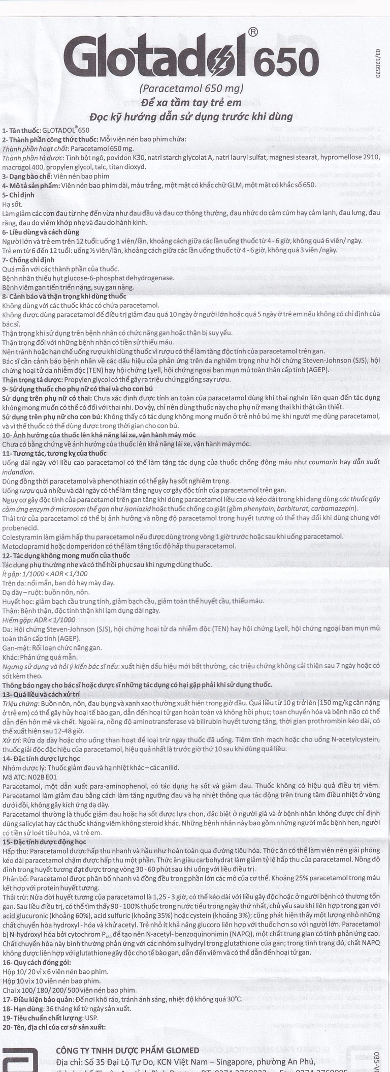 Cách dùng Thuốc Glotadol 650