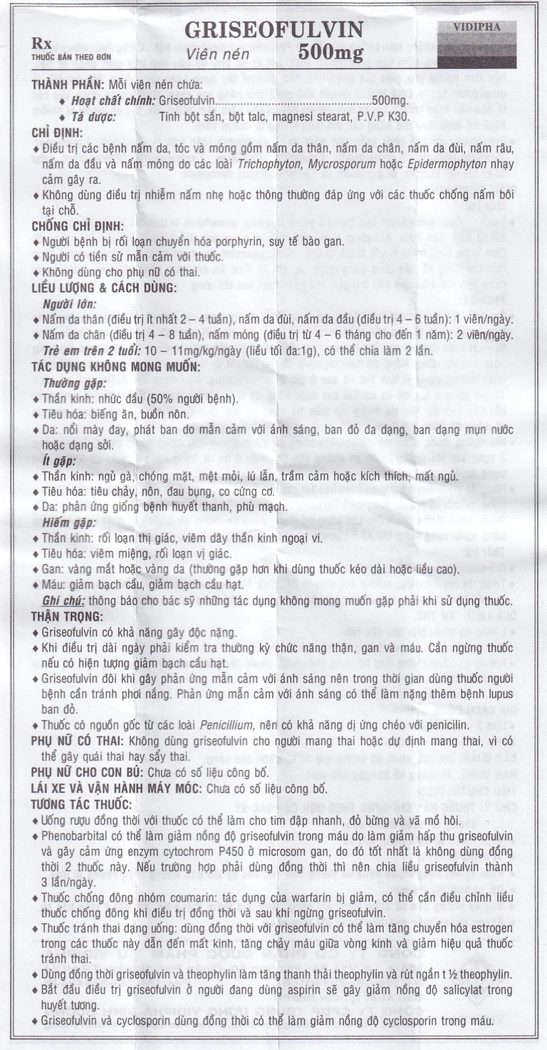 Cách dùng Thuốc Griseofulvin 500mg