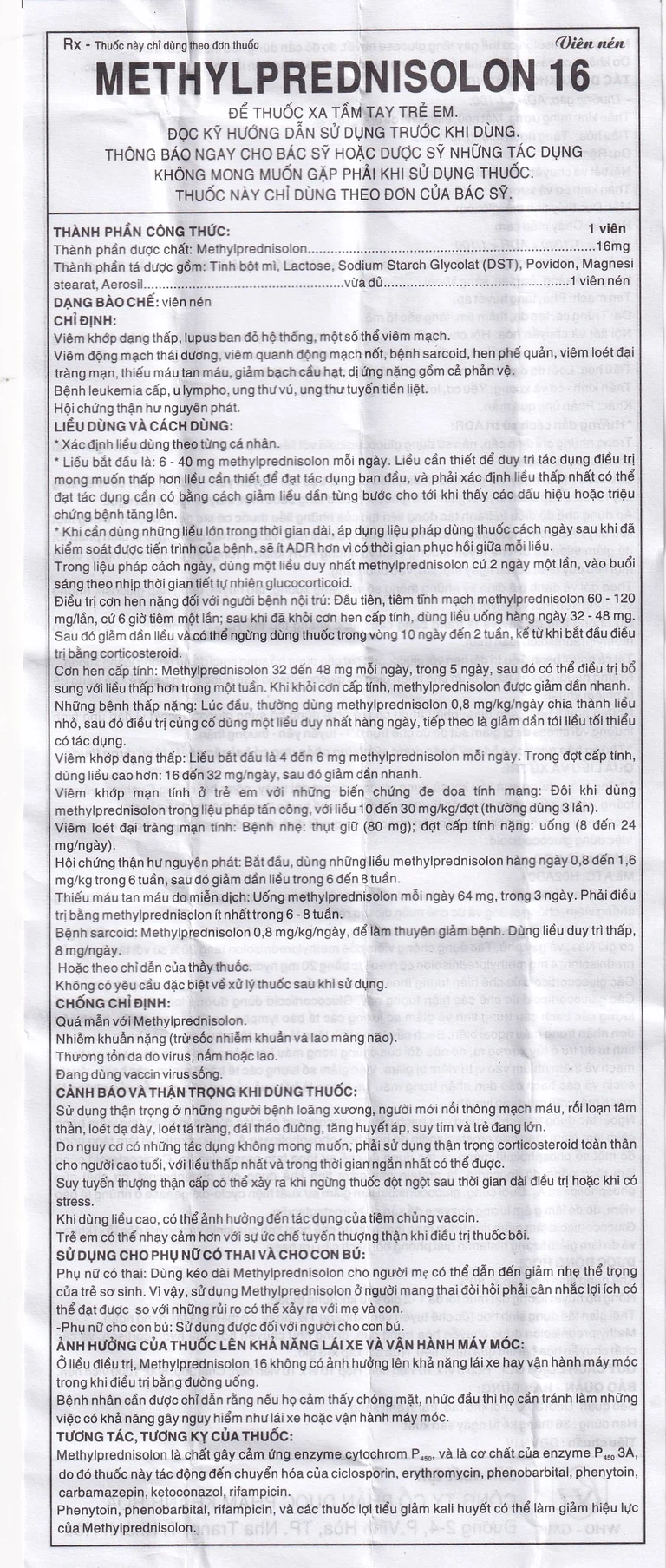 Thuốc Methylprednisolon 16mg dạng viên nén dùng đường uống.
