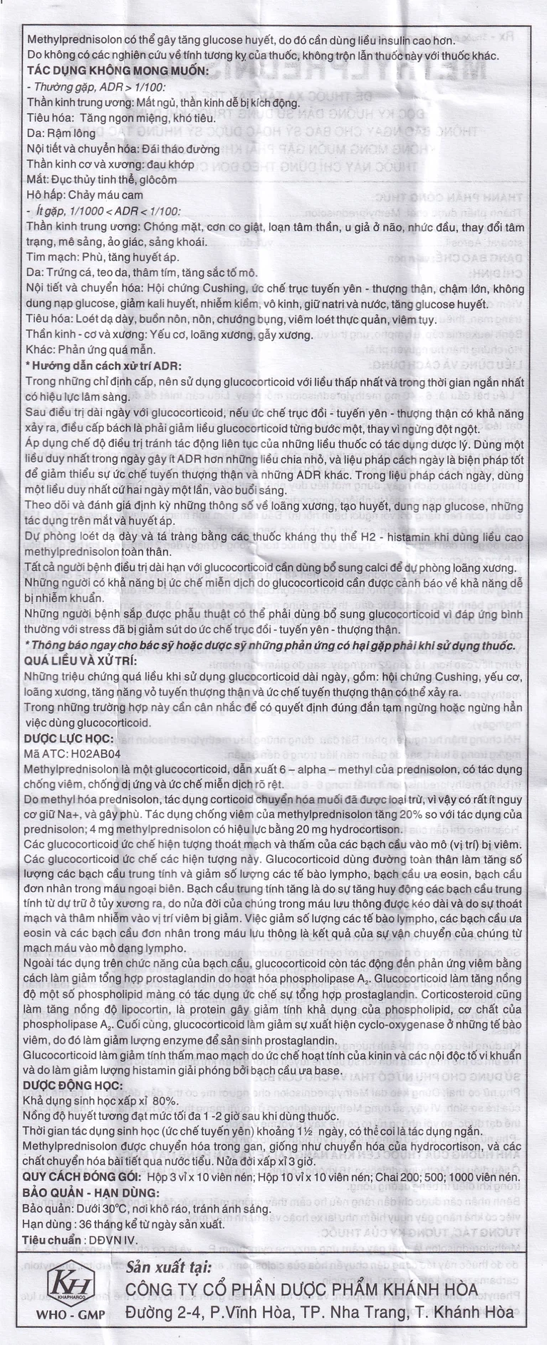 - Khi khỏi cơn cấp tính, methylprednisolon được giảm dần nhanh.