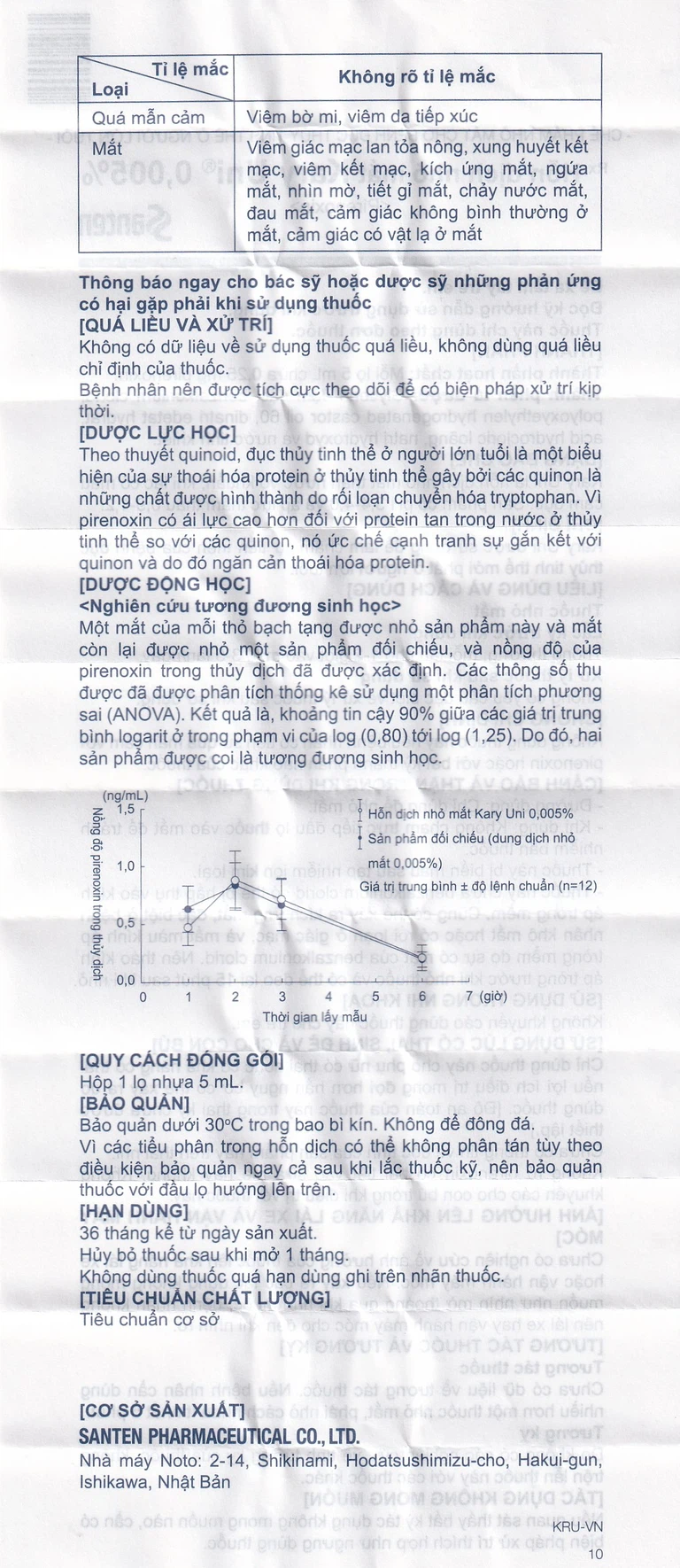 - Dược chất chính: Pirenoxin 0.25mg