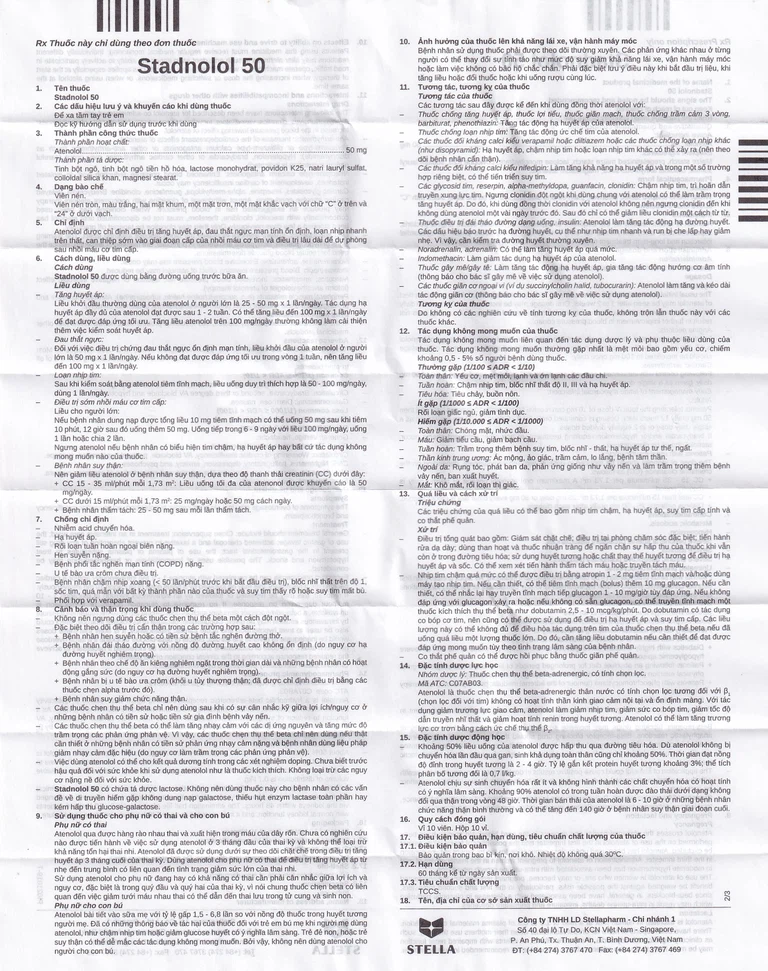 Công dụng của Thuốc Stadnolol 50