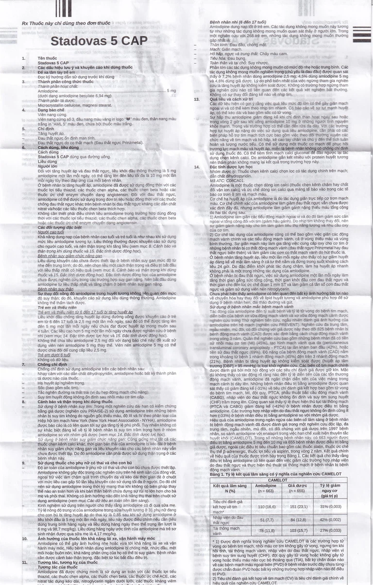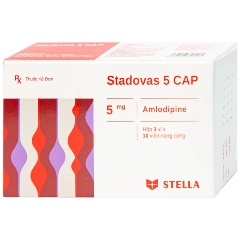 Thuốc Stadovas 5 CAP được sản xuất bởi Công ty TNHH LD Stellapharm, có thành phần chính là amlodipine, được chỉ định trong trường hợp tăng huyết áp, bệnh nhân đau thắt ngực ổn định mạn tính và bệnh nhân đau thắt ngực do co thắt mạch (Đau thắt ngực Prinzmetal).
