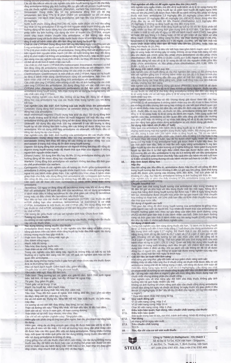 Sidelnafil: Sử dụng liều duy nhất 100 mg sildenafil ở các đối tượng bị tăng huyết áp vô căn không làm ảnh hưởng đến các thông số được động học của amlodipine. Khi sử dụng phối hợp amlodipine và sildenafil, mỗi thuốc đều cố riêng tác dụng hạ áp của chúng.