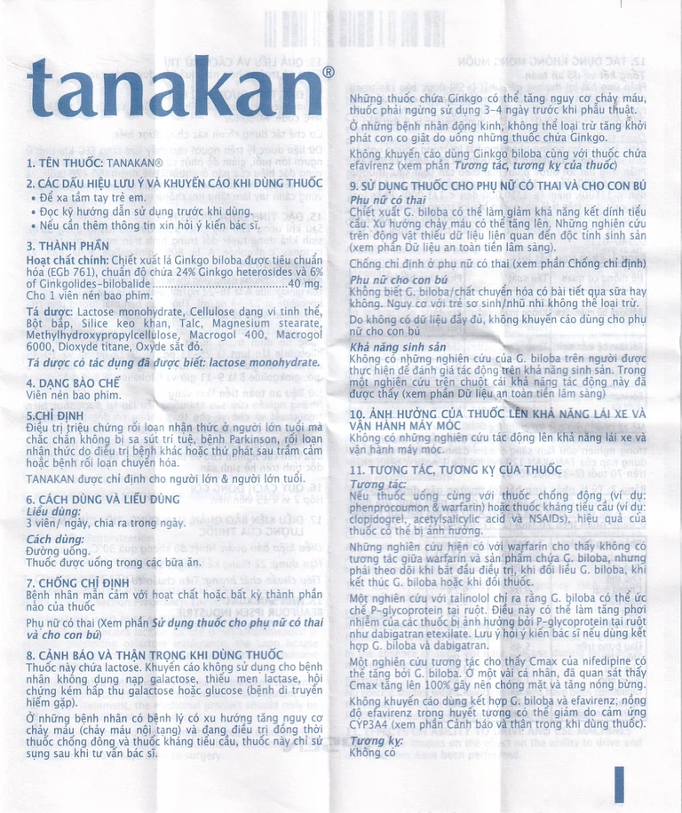 Bổ sung liều ngay khi nhớ ra. Tuy nhiên, nếu thời gian giãn cách với liều tiếp theo quá ngắn thì bỏ qua liều đã quên và tiếp tục lịch dùng thuốc Tanakan. Không dùng liều gấp đôi để bù cho liều đã bị bỏ lỡ.