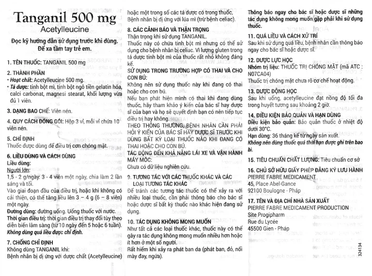 Cách dùng Thuốc Tanganil 500mg