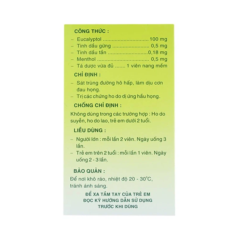 - Không dùng cho các trường hợp: Ho do suyễn, suy hô hấp, ho do lao.