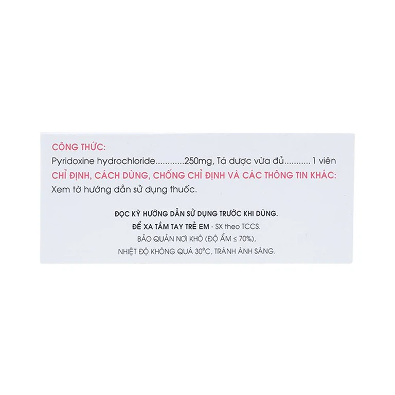 Cách dùng Thuốc Vitamin B6 250mg