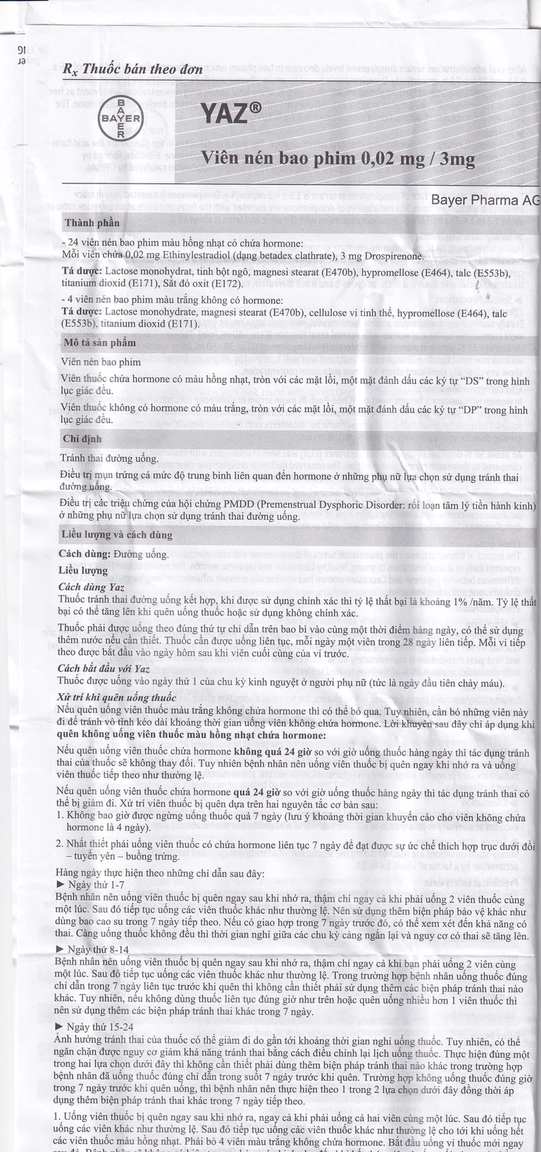 Cách dùng Thuốc Yaz