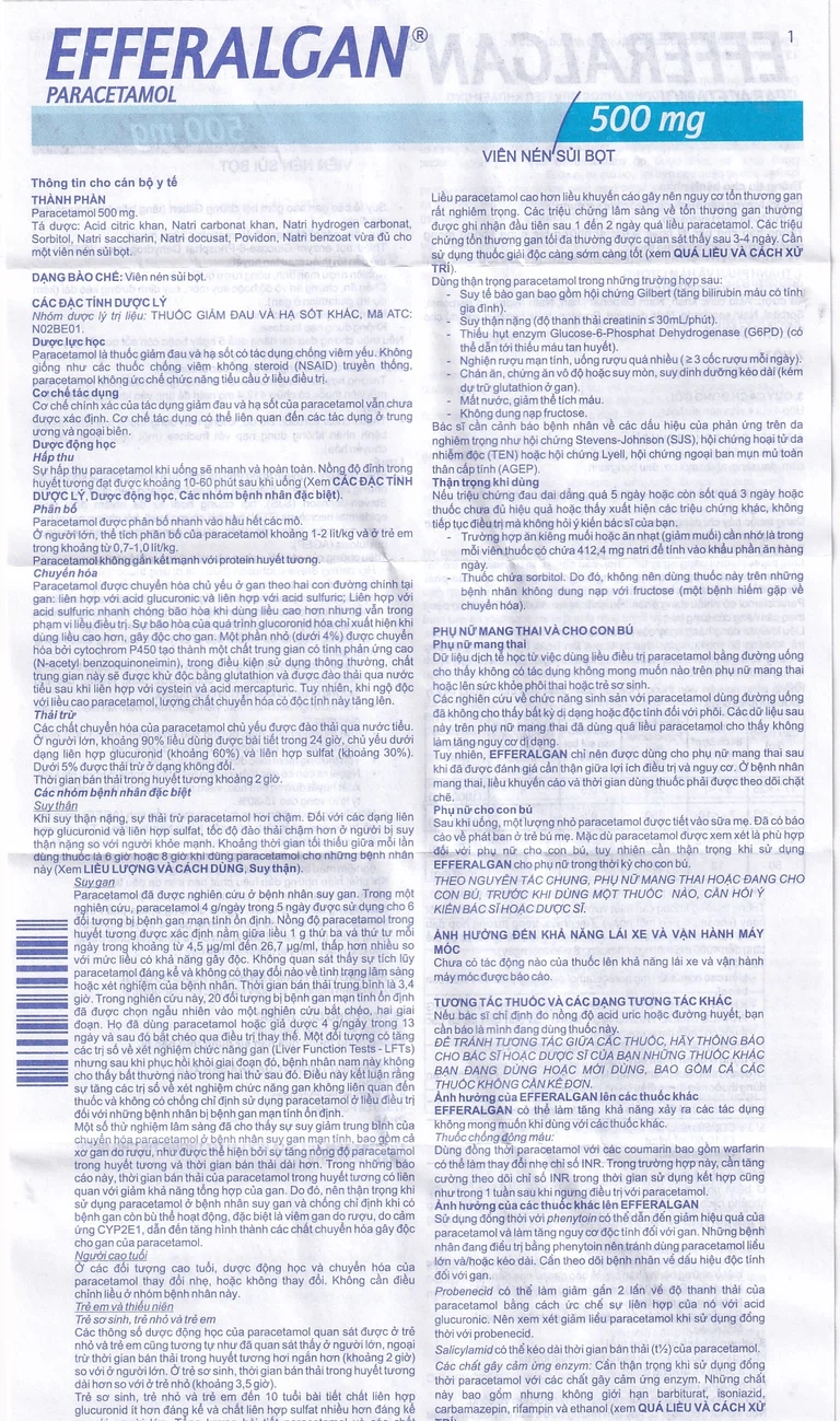 Tuy nhiên, Efferalgan chỉ nên được dùng cho phụ nữ mang thai sau khi đã được đánh giá cẩn thận giữa lợi ích điều trị và nguy cơ. Ở bệnh nhân mang thai, liều khuyến cáo và thời gian dùng thuốc phải được theo dõi chặt chẽ.