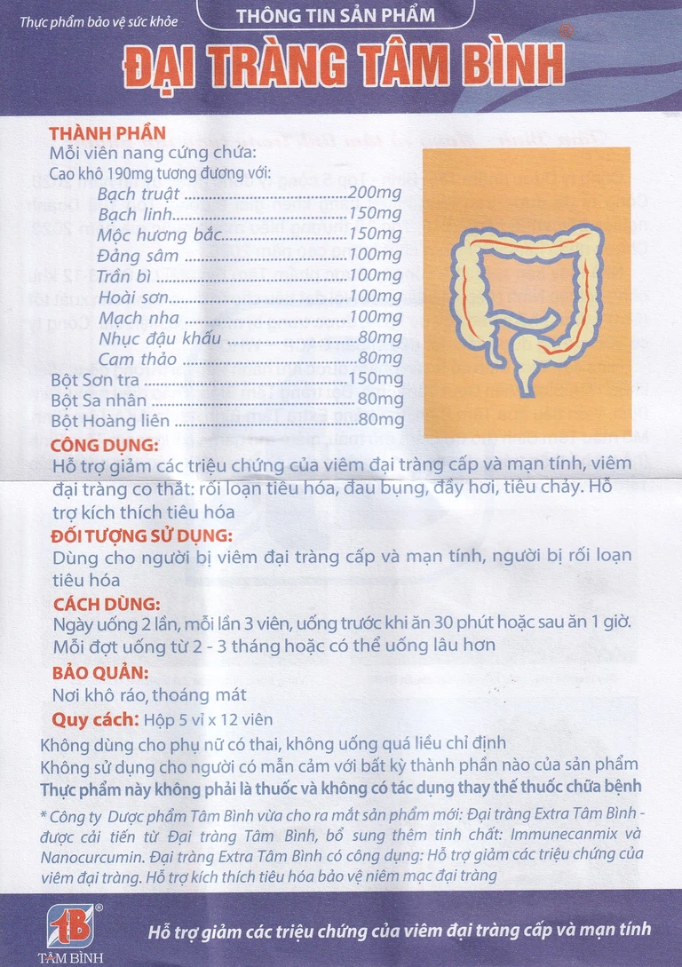 Đại Tràng Tâm Bình dùng cho người bị viêm đại tràng cấp và mãn tính.