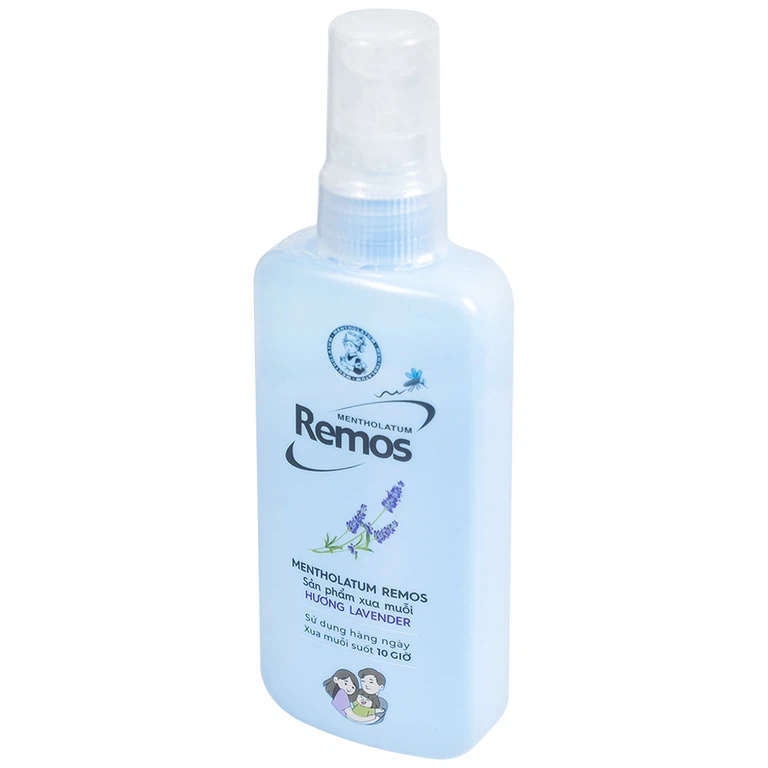 Xịt chống muỗi Remos Lavender Rohto với thành phần chính là Diethyltoluamide 15% giúp duy trì hiệu quả xua đuổi muỗi lên đến 10 tiếng.