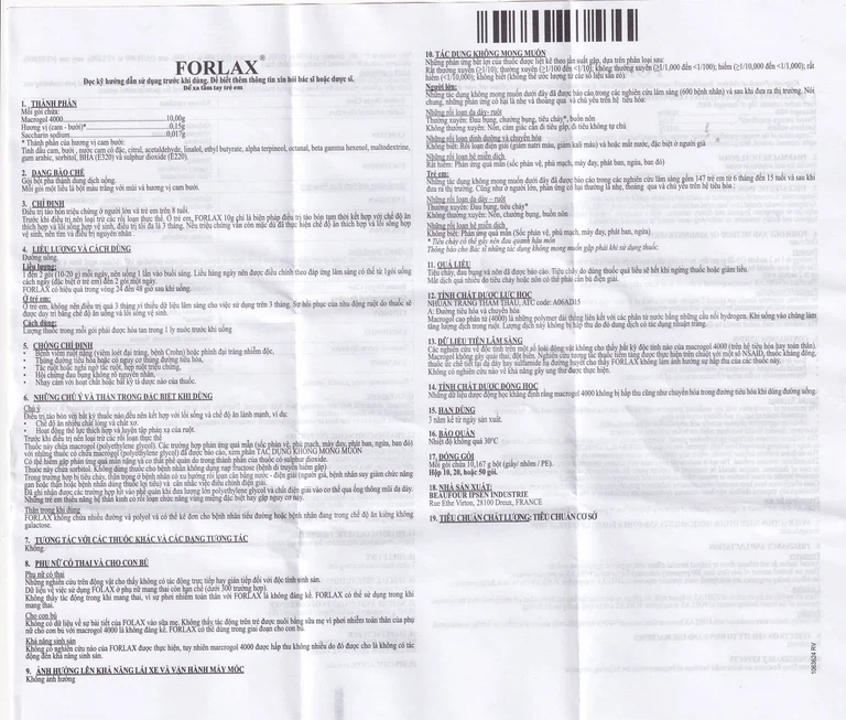 - Trước khi điều trị, nên loại trừ các rối loạn thực thể. Ở trẻ em, Forlax chỉ là biện pháp điều trị táo bón tạm thời kết hợp với chế độ ăn thích hợp và lối sống hợp vệ sinh, điều trị tối đa là 3 tháng.