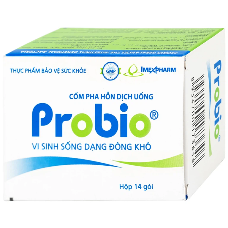 Cốm pha hỗn dịch uống Probio Imexpharm là thực phẩm bảo vệ sức khỏe giúp cân bằng hệ vi sinh đường ruột. Sản phẩm chứa 1 tỷ vi khuẩn sống Lactobacillus acidophilus có lợi cho hệ tiêu hóa. Mỗi hộp sản phẩm chứa 14 gói, tiện lợi cho việc sử dụng hàng ngày.