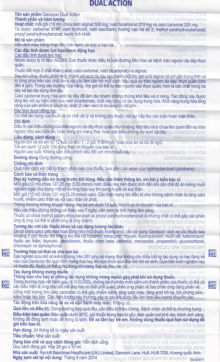 Cách dùng Hỗn dịch Gaviscon Dual Action