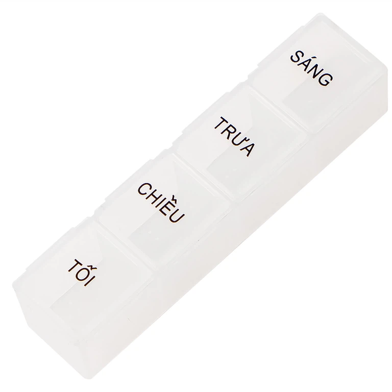 Hộp đựng thuốc 4-Hole Pillbox gồm 4 ngăn dài chứa thuốc đủ dùng cho một ngày và có nhãn ghi rõ ràng các thời điểm uống: Sáng, trưa, chiều, tối để giúp bạn nhớ uống thuốc đúng cách.