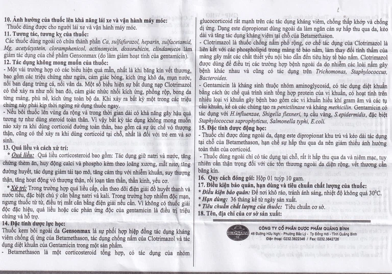 Các thuốc dùng ngoài có chứa thành phần: Calci, sulfafurazol, heparin, sulfacetamid. Magie, acetylcystein, cloramphenicol, actinomycin, doxorubicin, clindamycin làm giảm tác dụng của chế phẩm Gensonmax (do làm giảm hoạt tính của gentamicin).
