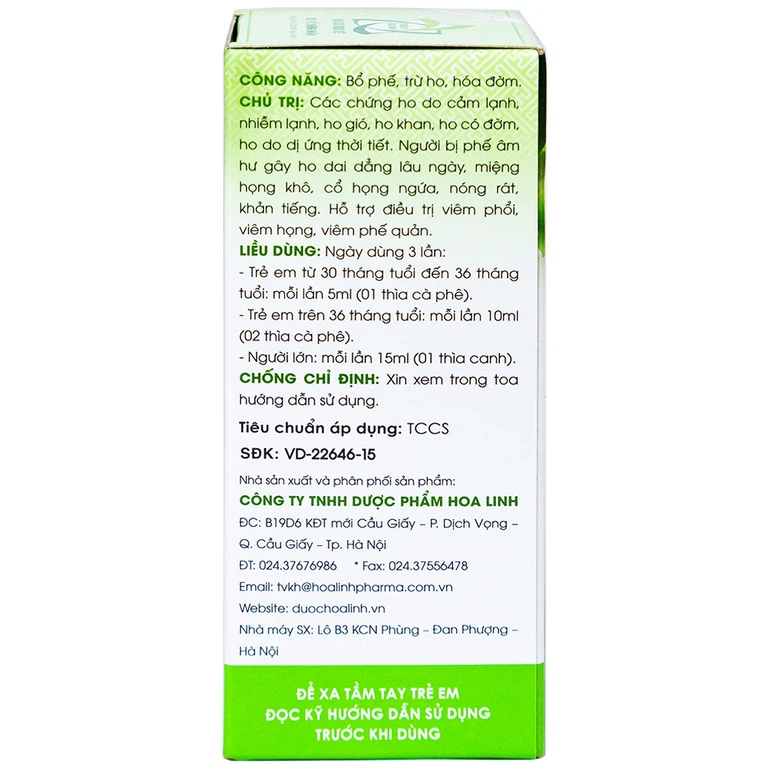 Nhà sản xuất: công ty TNHH Dược phẩm Hoa Linh.
