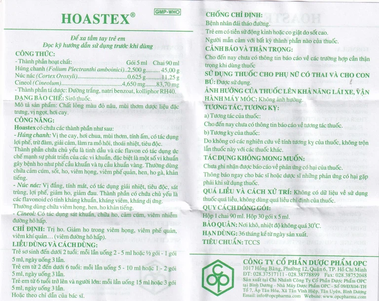 Thành phần của Siro HoAstex