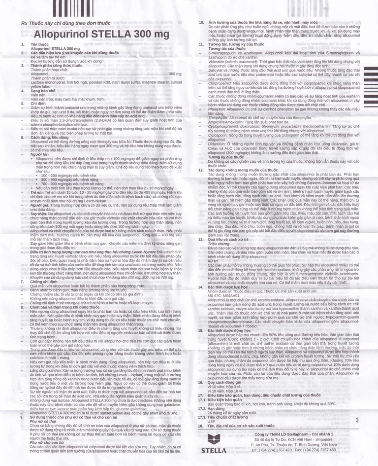 Allopurinol STELLA 300 mg chứa tá dược sunset yellow lake có thể gây phản ứng dị ứng.