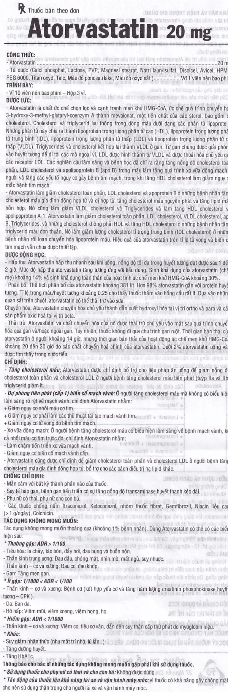 Cách dùng Thuốc Atorvastatin 20mg