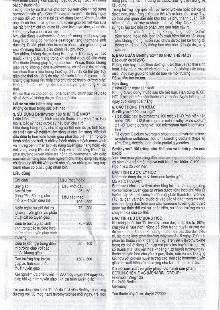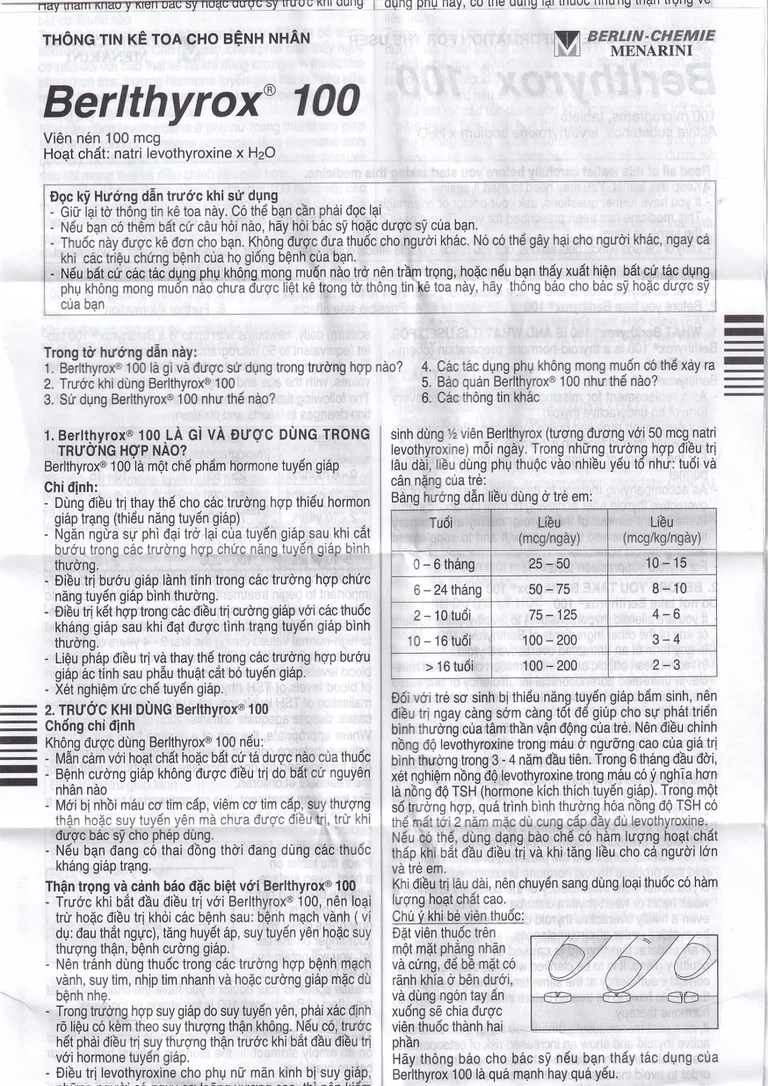 Trước khi sử dụng thuốc Berlthyrox, bạn cần đọc kỹ hướng dẫn sử dụng và tham khảo thông tin bên dưới.