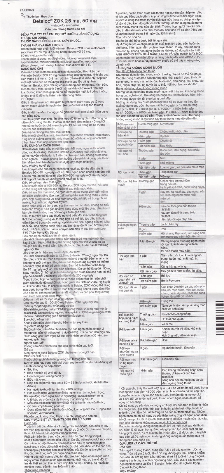 Trong trường hợp có hạ huyết áp và/hoặc chậm nhịp tim, cần phải giảm các thuốc dùng phối hợp hoặc giảm liều Betaloc ZOK. Hạ huyết áp khi bắt đầu điều trị khốn có nghĩa là Betaloc ZOK không thể dung nạp được trong điều trị suy tim mạn tính, nhưng không được tăng liều cho đến khi tình trạng bệnh nhân đã ổn định và cần phải tăng cường việc kiểm soát chức năng thận.