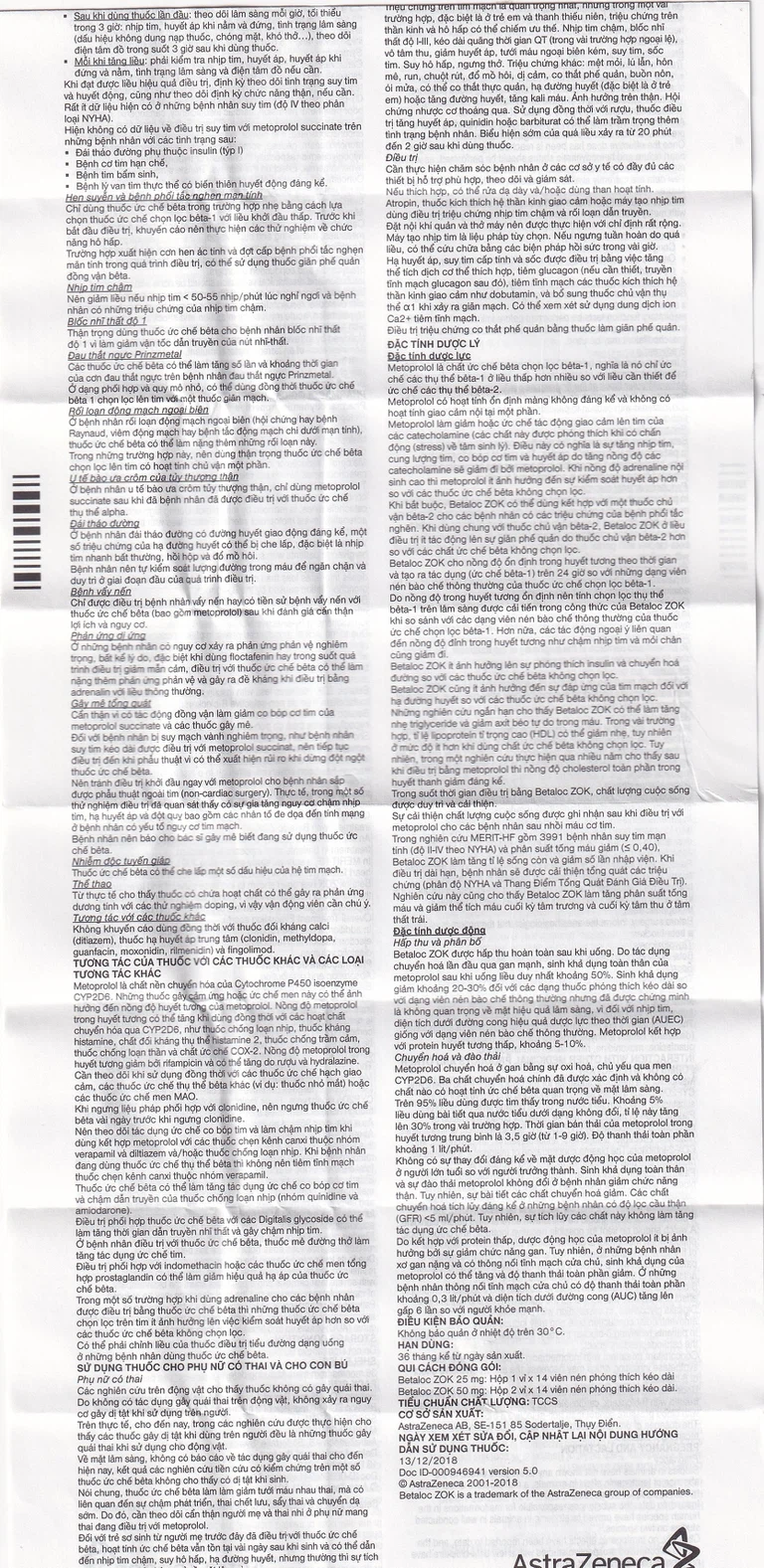 Thành phần của Thuốc Betaloc Zok 25mg