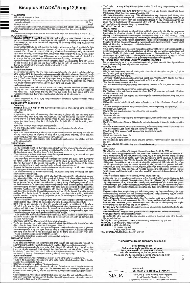 Bisoplus Stada 5mg/12.5mg trị tăng huyết áp (3 vỉ x 10 viên)