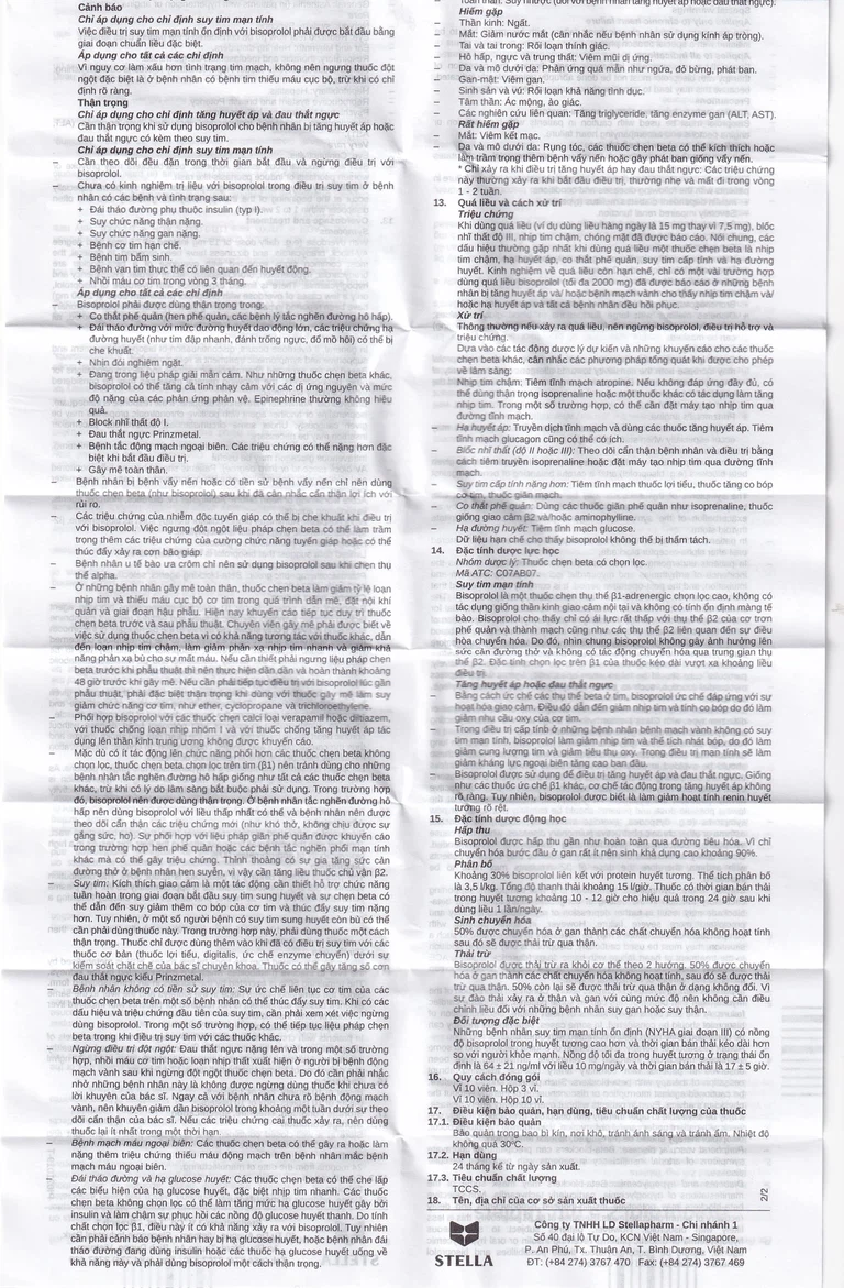 Phân bố: Khoảng 30% bisoprolol liên kết với protein huyết tương. Thể tích phân bố là 3,5 l/kg. Tổng độ thanh thải khoảng 15 l/giờ. Thuốc có thời gian bán thải trong huyết tương khoảng 10 – 12 giờ cho hiệu quả trong 24 giờ sau khi dùng liều 1 lần/ngày.