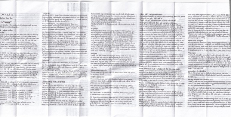 - Co-Diovan có thể được sử dụng như điều trị khởi đầu ở những bệnh nhân có thể cần dùng nhiều thuốc để đạt được mục tiêu huyết áp. Sự lựa chọn Co-Diovan như điều trị khởi đầu cho cao huyết áp nên được dựa trên việc đánh giá tiềm năng lợi ích và nguy cơ.