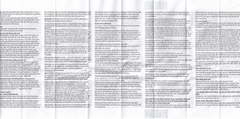 Lithium: Tăng nồng độ Lithium trong máu có thể đảo ngược và độc tính đã được báo cáo khi sử dụng đồng thời Lithium với các chất ức chế ACE, các chất kháng thụ thể Angiotensin II hoặc các Thiazide. Vì độ thanh thải ở thận của Lithium giảm do các Thiazide, nguy cơ độc tính của Lithium có thể tăng hơn với Co-Diovan. Vì vậy theo dõi cẩn thận nồng độ Lithium trong máu trong suốt quá trình điều trị phối hợp được khuyến cáo.