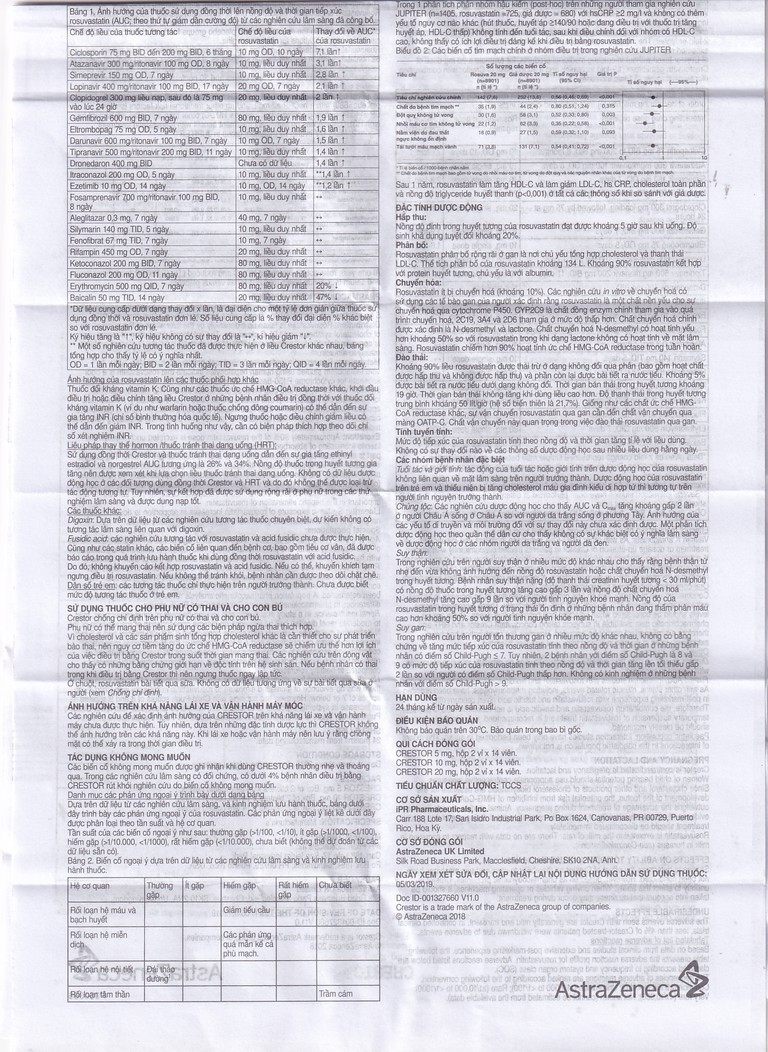 Erythromycin: Sử dụng đồng thời Crestor và erythromycin dẫn đến giảm 20% giá trị AUC và giảm 30% giá trị Cmax của rosuvastatin.