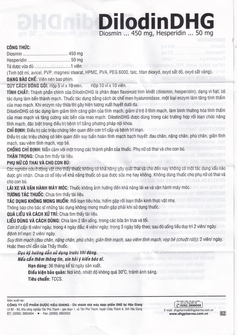 DilodinDHG có tác dụng làm giảm tính căng giãn của tĩnh mạch, giảm ứ trệ ở tĩnh mạch, làm bình thường hóa tính thấm của mao mạch và tăng cường sức bền của mao mạch. DilodinDHG được dùng trong các trường hợp rối loạn chức năng tĩnh mạch, đặc biệt trong điều trị bệnh trĩ bằng phương pháp nội khoa.