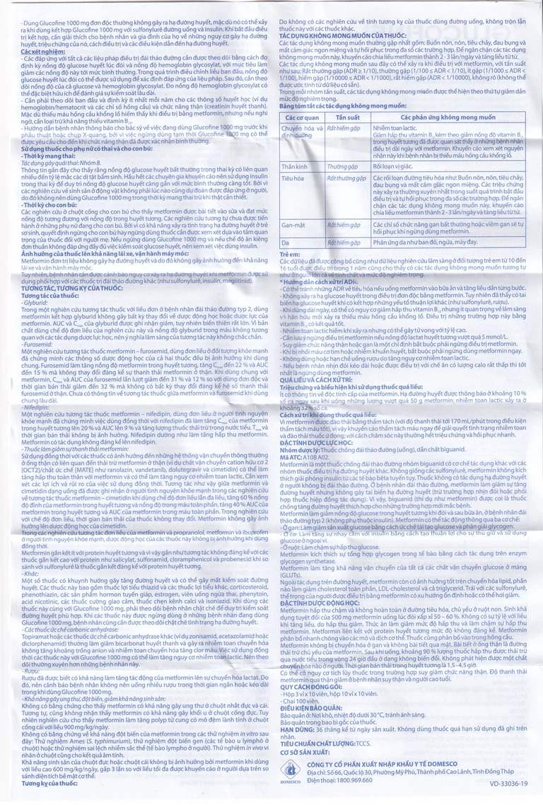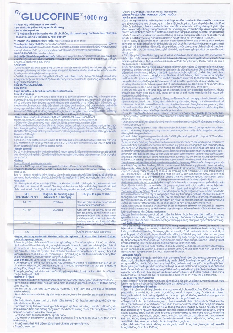 Bệnh nhân nên được tư vấn không nên uống rượu nhiều trong thời gian ngắn hoặc kéo dài trong khi dùng Glucofine 1000 mg.