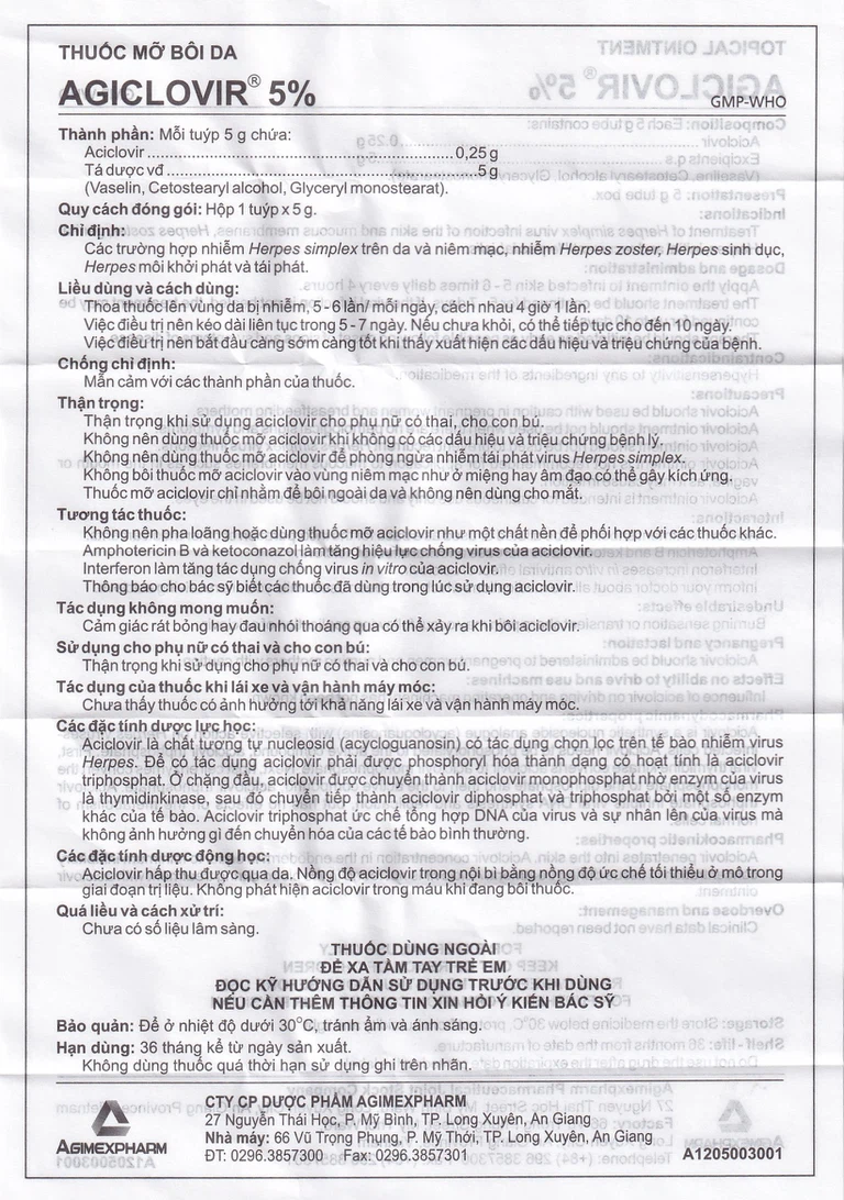Cách dùng Thuốc mỡ bôi da Agiclovir 5%