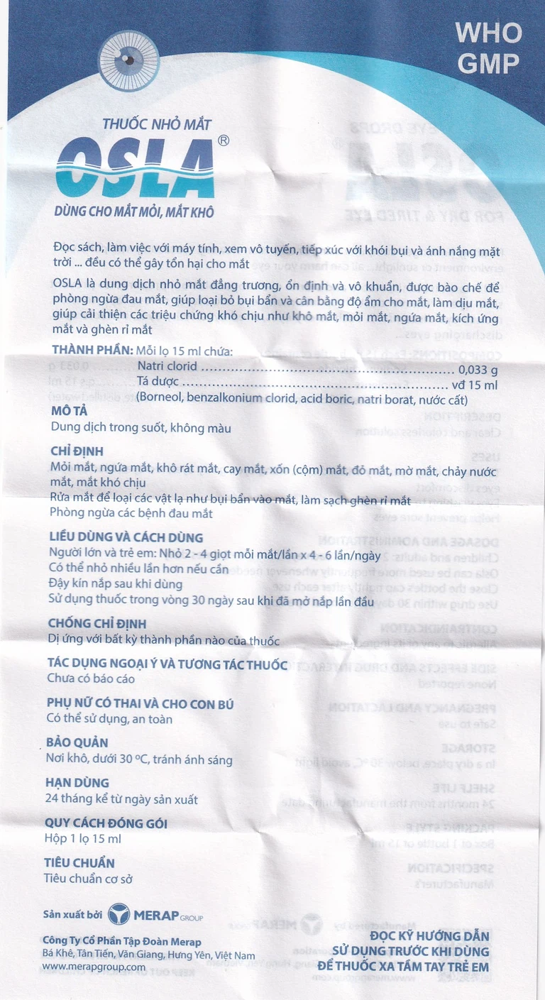 Cách dùng Thuốc nhỏ mắt Osla