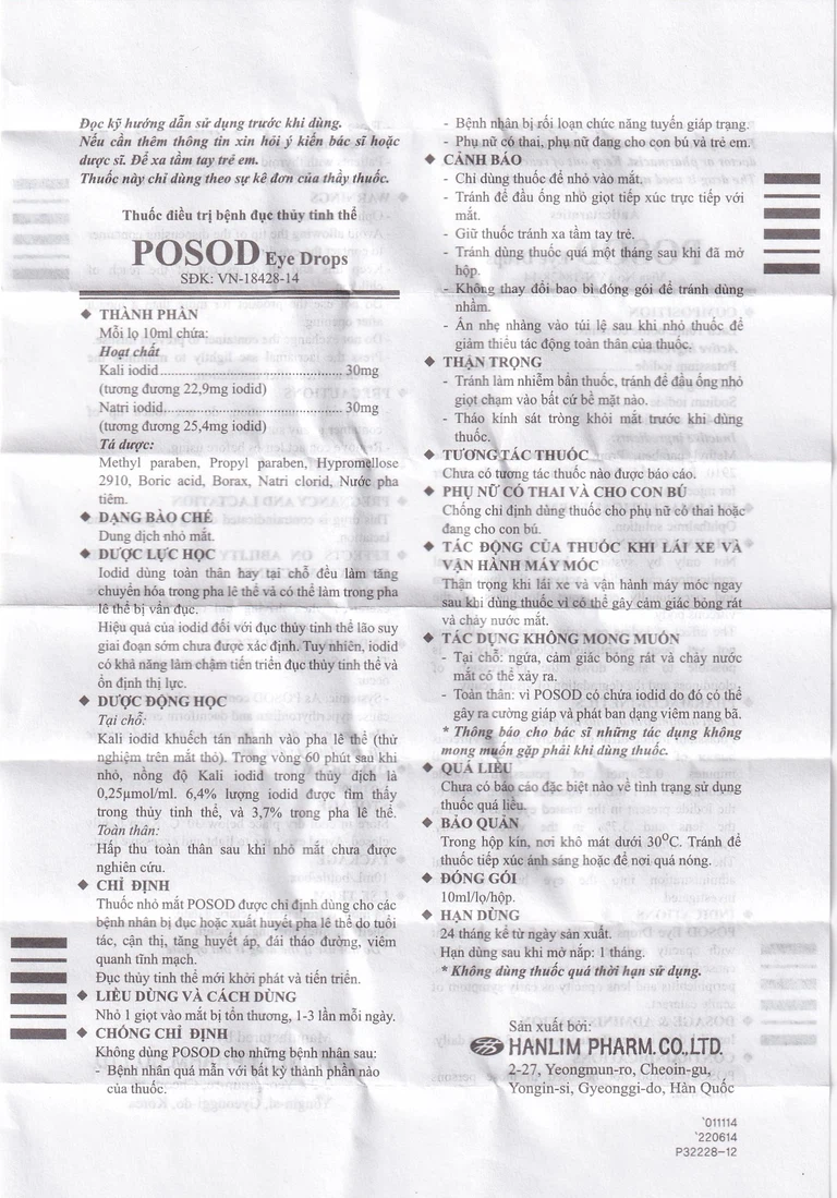 - Vì Posod có chứa iodid do đó có thể gây ra cường giáp và phát ban dạng viêm nang bã.