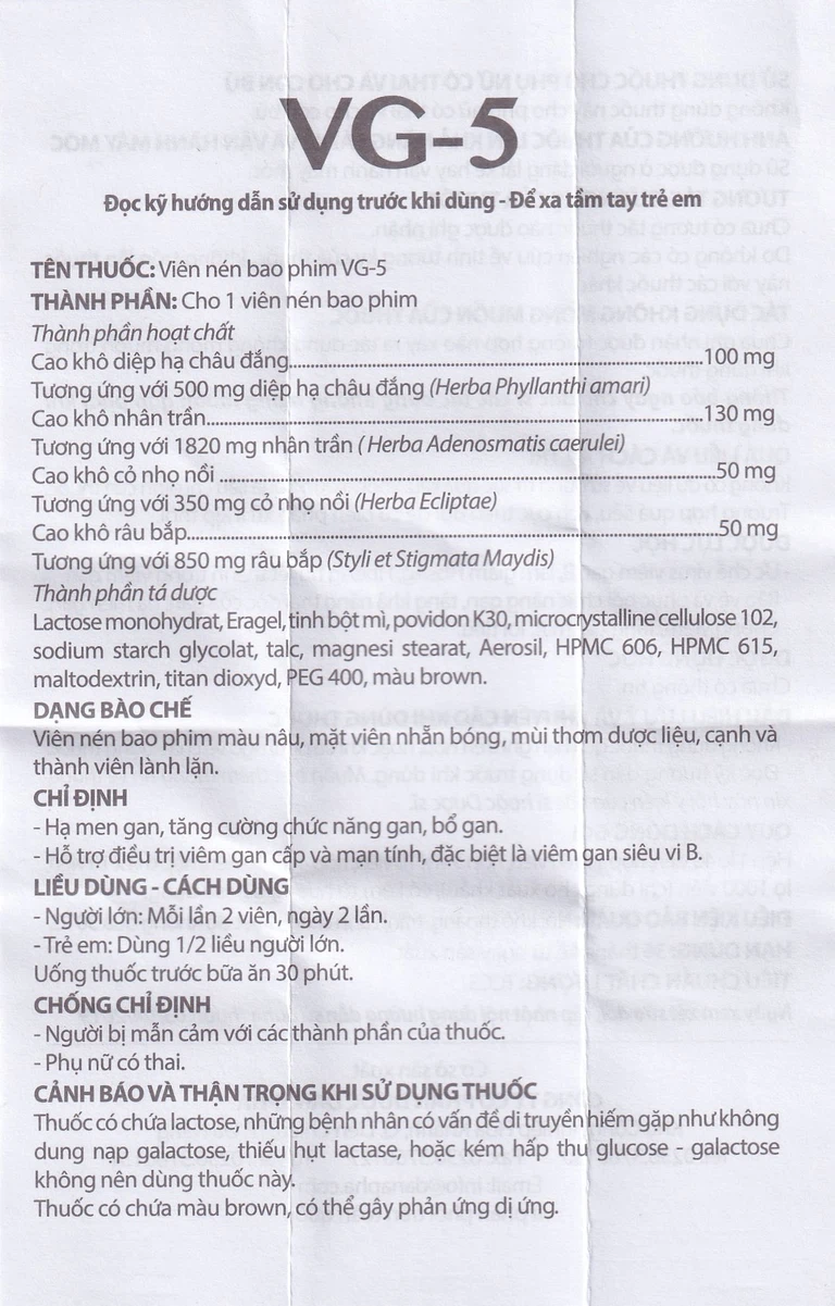 Thuốc VG-5 chống chỉ định trong các trường hợp sau: